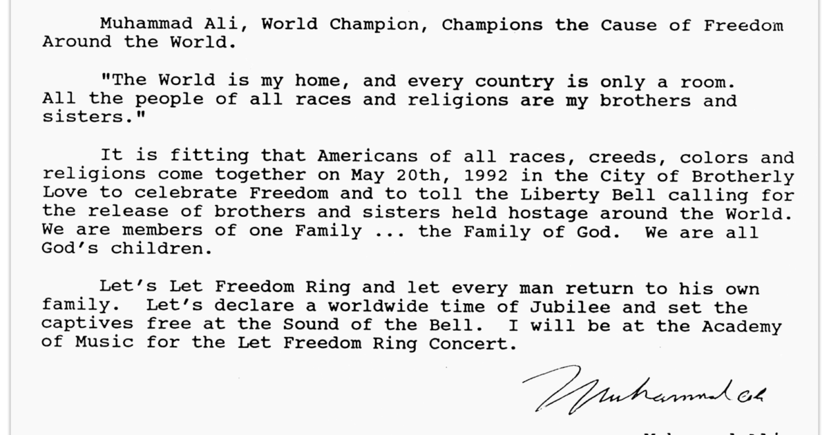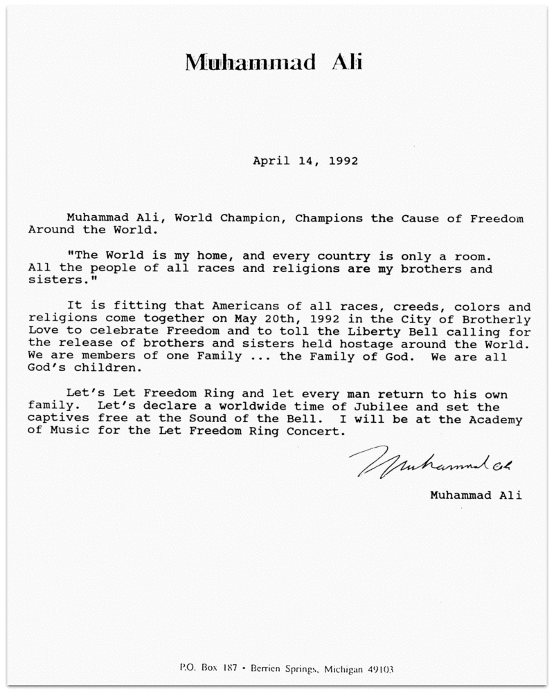Muhammad Ali, World Champion, Champions the Cause of Freedom Around the World.
